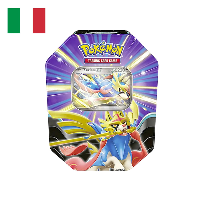 Scopri il potere delle leggende con la Tin Pokémon Leggende Sovrane, disponibile in due varianti con carta promo esclusiva: Zacian-ex e Koraidon-ex! Questa elegante tin contiene 4 buste d’espansione per arricchire la tua collezione e migliorare il tuo mazzo nel Gioco di Carte Collezionabili Pokémon.